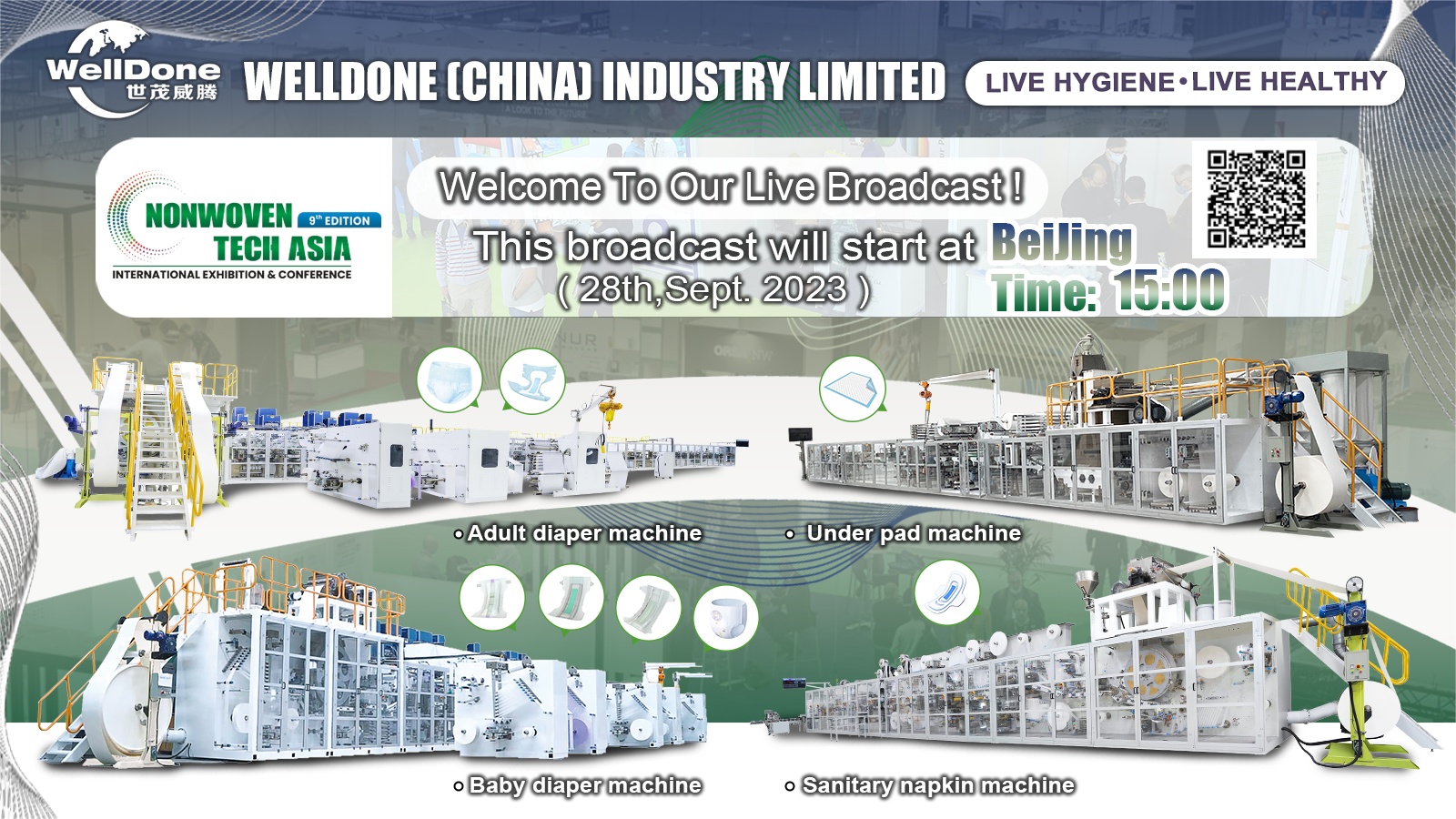 We sincerely invite you to watch our live broadcast on September 21st at 3 PM Beijing time.ย We will introduce our company, diaper structure and raw materials, and our baby diaper machinery.